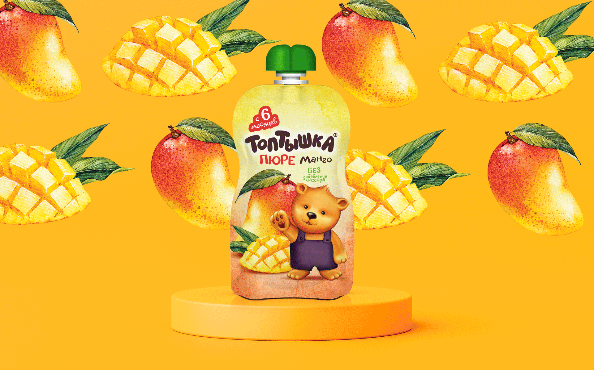 Ребрендинг торговой марки детской линейки "Топтышка". Редизайн логотипа и упаковки. Обновление и отрисовка бренд-персонажа.